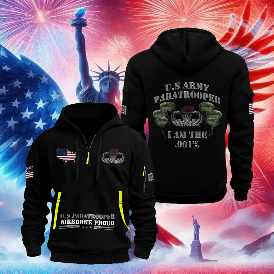 US Army Veteran Quarter Zip Hoodie Paratroopers I Am Th .001′ Proud Veteran Outfit Gifts For Men