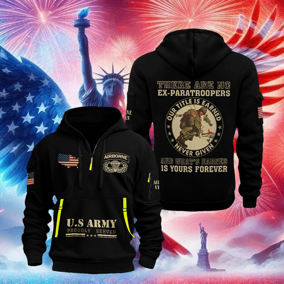 US Army Veteran Quarter Zip Hoodie There Are No Ex-paratroopers Proud Veteran Oufit Gifts