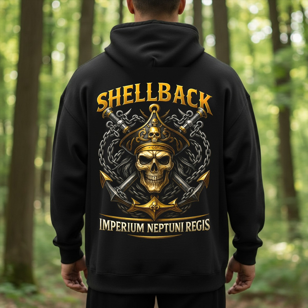 US Navy Shellback Hoodie Imperium Neptuni Regis Skull Anchor Navy Veteran Merch Presents