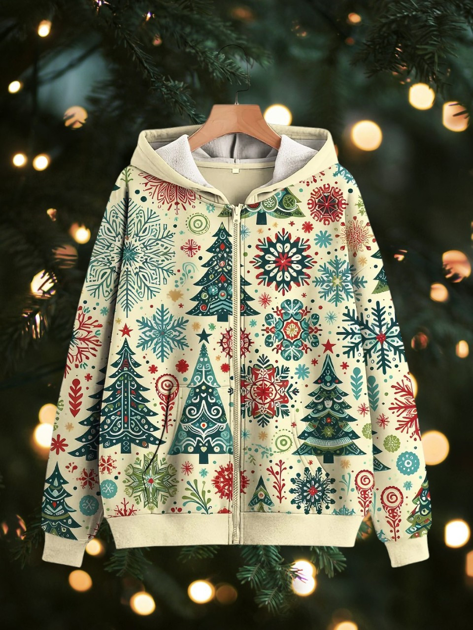 Winter Tree Pine Christmas Holiday Zip Hoodie Tree Pine Snowflake Christmas Gifts For Her