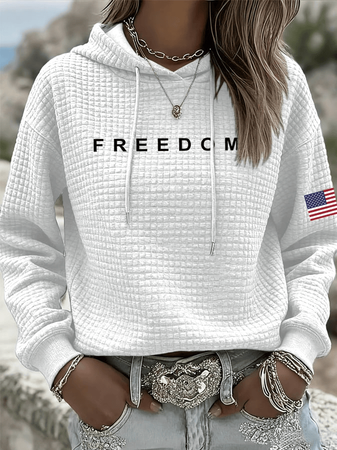 $39.99 – $44.99Price range: $39.99 through $44.99Women’s Freedom American Flag Print Waffle Hoodie TPUSA Charlie Kirk Tribute Gift