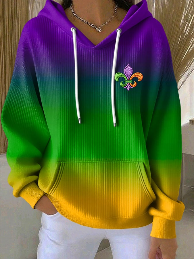 Women’s Mardi Gras Print Casual Hoodie Colorful Festival Hoodie New Orleans Themed Gift