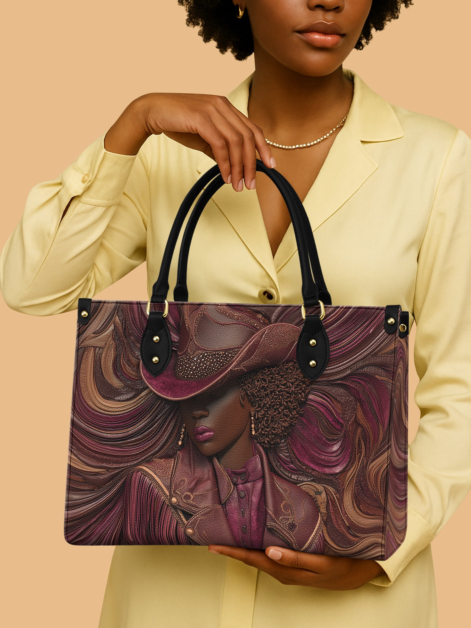$42.99 – $52.99Price range: $42.99 through $52.99African Cowgirl Flowing Leather Bag Black Woman Theme Bag African Cowgirl Presents