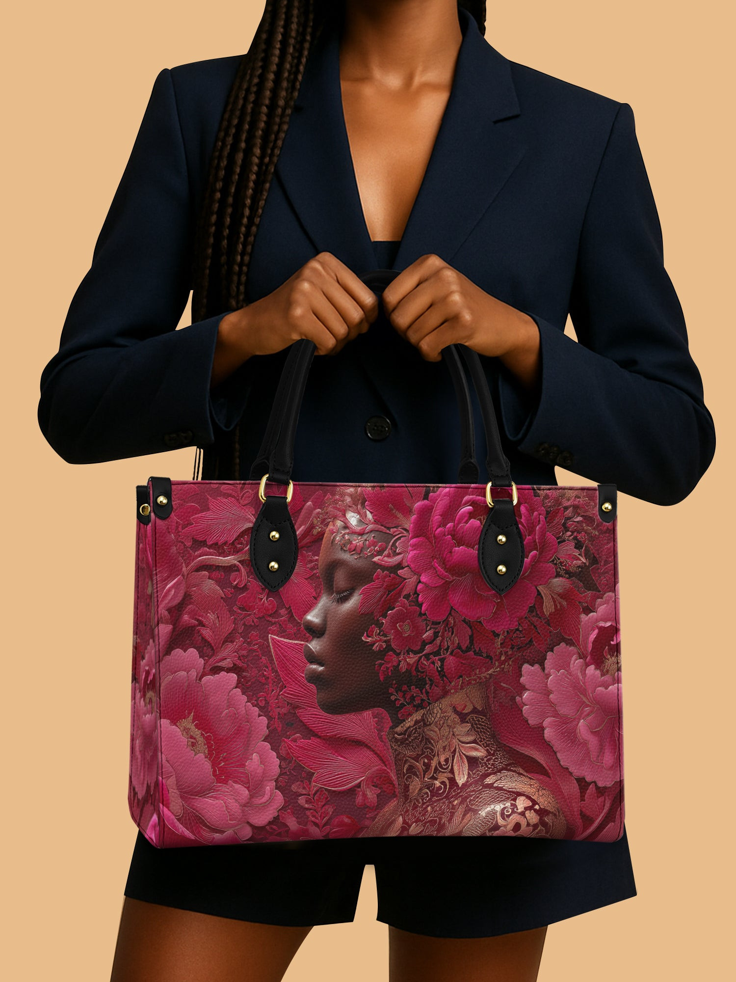 African Queen Pearl Serenity Leather Bag Black Woman Theme Bag Native Gifts For Flower Lovers