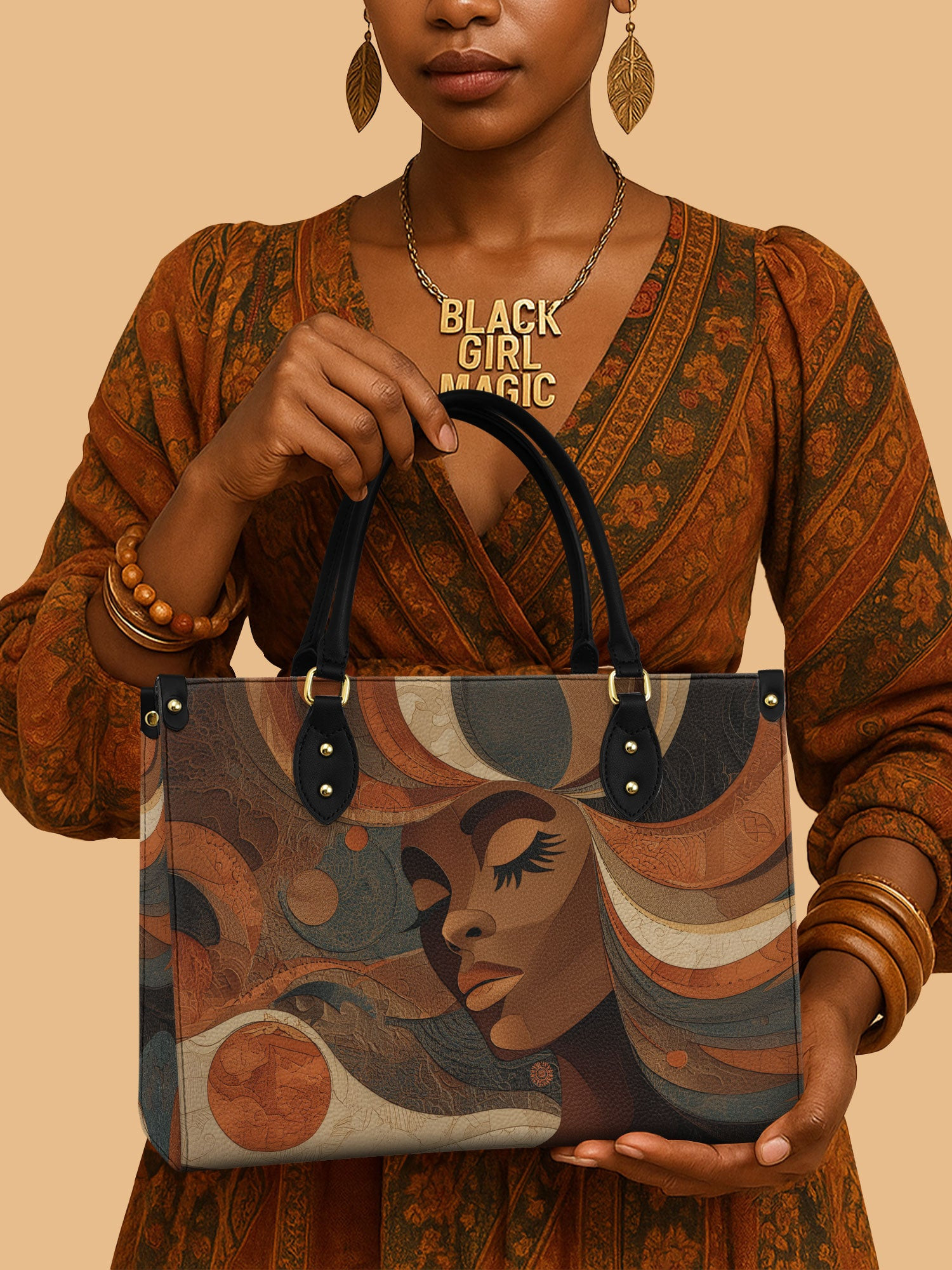 $42.99 – $52.99Price range: $42.99 through $52.99Africa Queen Earth Tone Leather Bag Black Woman Theme Bag African Art Gifts For Mom
