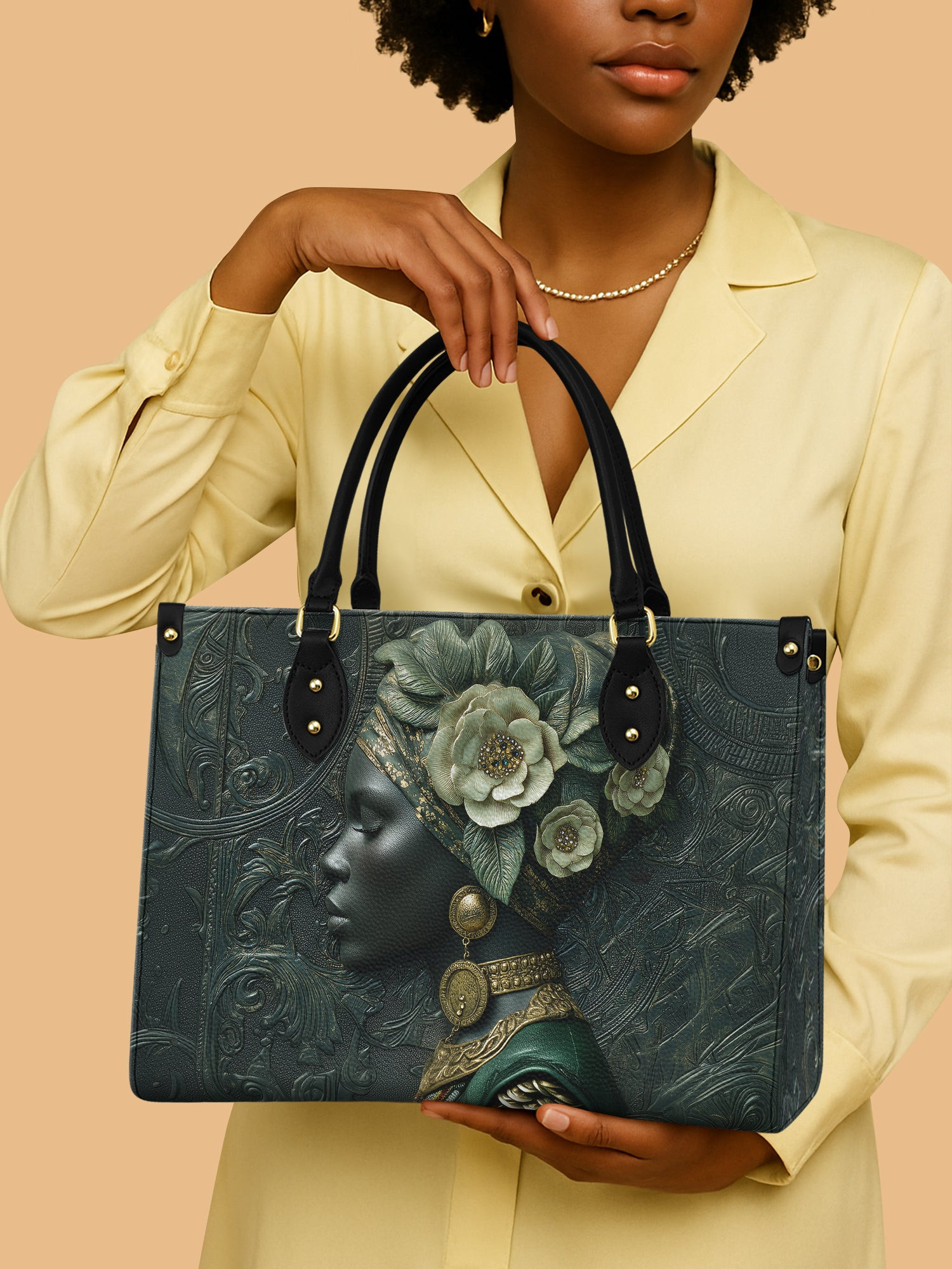 $42.99 – $52.99Price range: $42.99 through $52.99Africa Queen Ethereal Grace Leather Bag African Art Bag Black Woman Gifts For Her