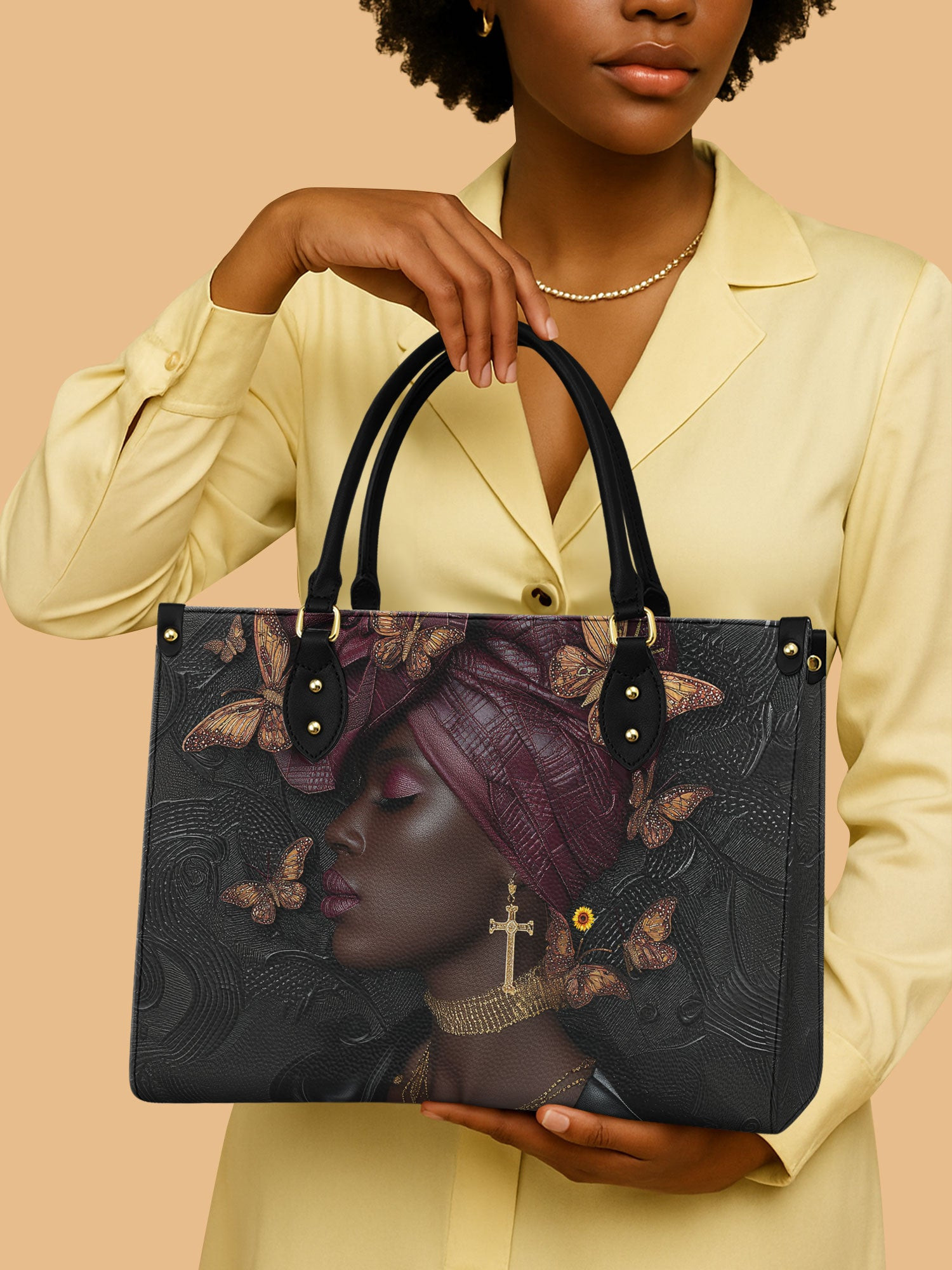 $59.99 – $99.99Price range: $59.99 through $99.99Rushgleam Crimson Seraph Premium Leather Handbag Top Elegant Black Woman Art Gift Ideas