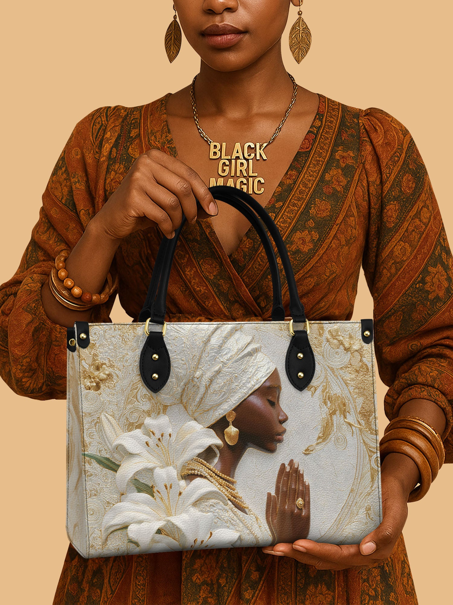 $59.99 – $99.99Price range: $59.99 through $99.99Rushgleam Golden Majesty Premium Handbag African Queen Bag Great Present For Women