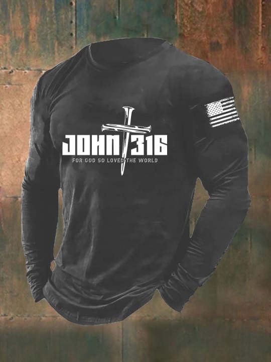 Rushgleam John 316 For God Long Sleeve Shirt So Loved The World U.S Flag Unique Retired Soldiers Gifts