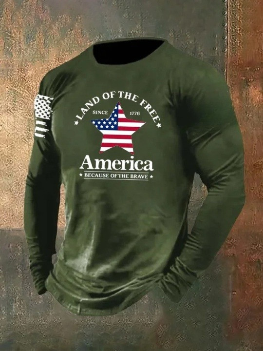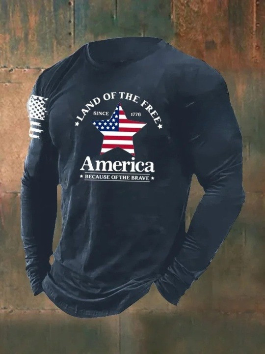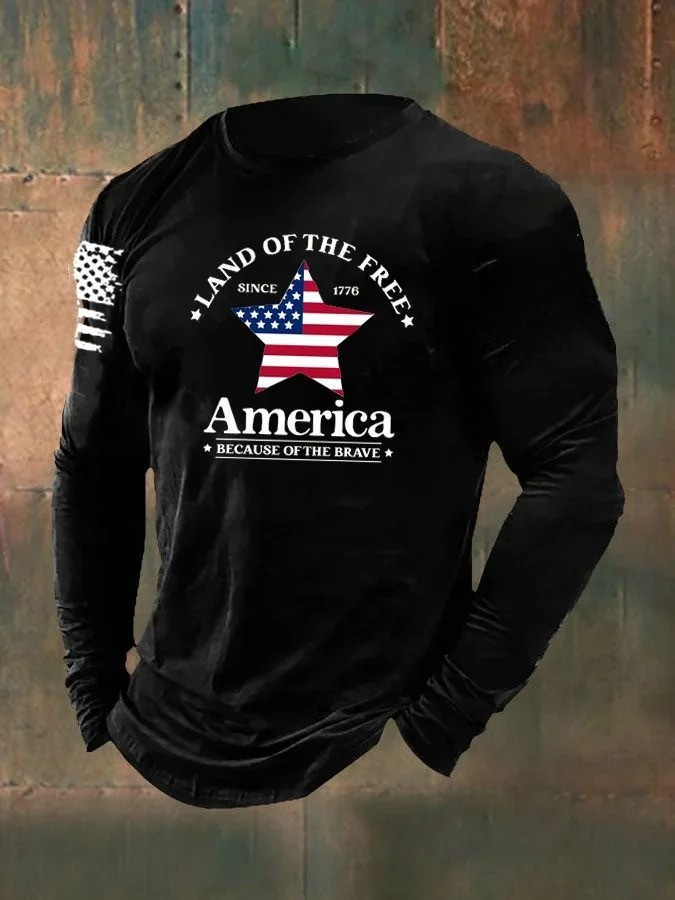 Rushgleam Land Of The Free Long Sleeve Shirt Home Of The Brave Star America Flag Veteran Merch Gifts