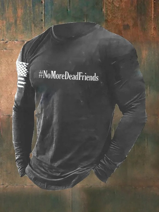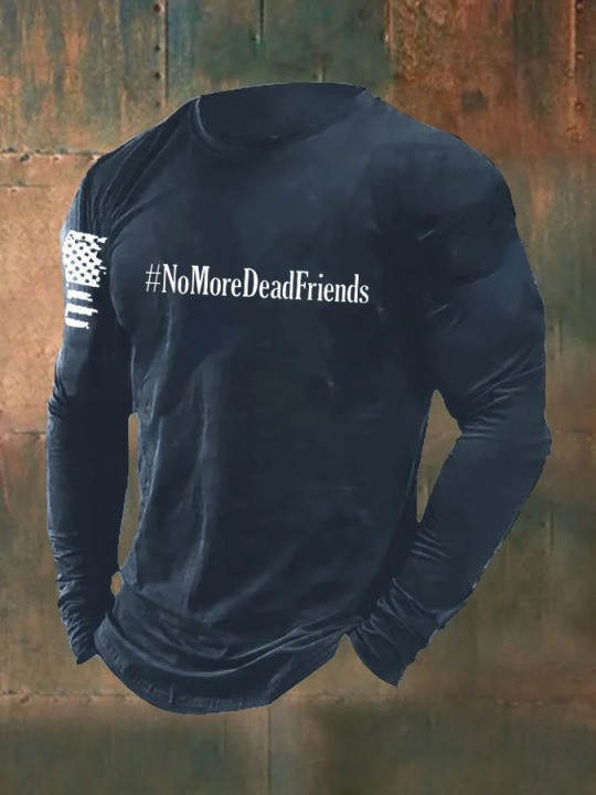 Rushgleam No More Dead Friends Long Sleeve Shirt American Flag Patriotic Veteran Merch Gifts For Him