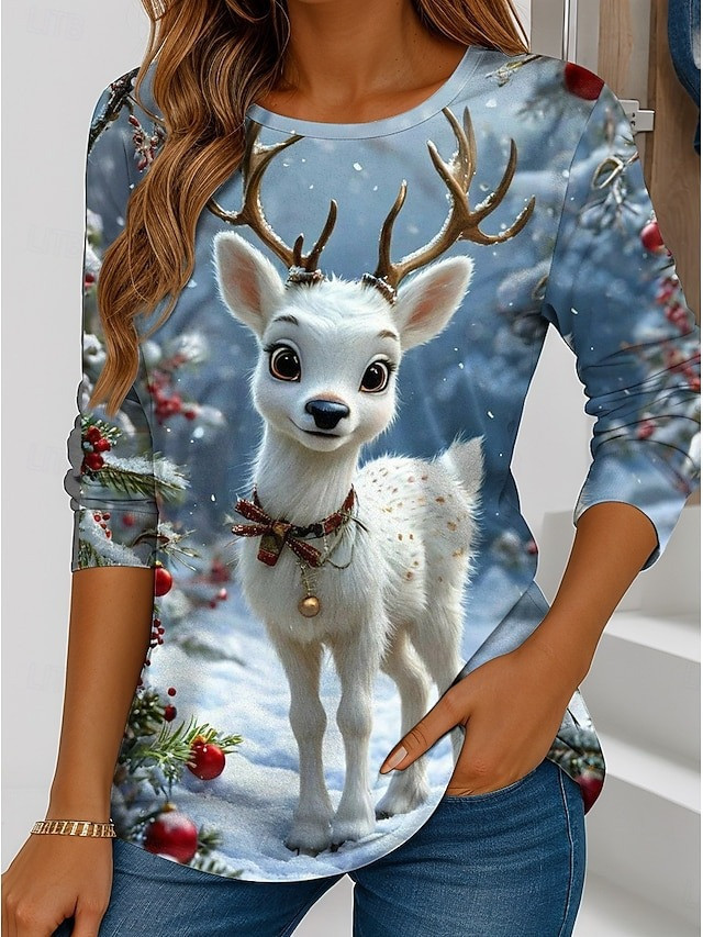 Cute White Reindeer Christmas Long Sleeve Shirt Winter Christmas Gifts For Women