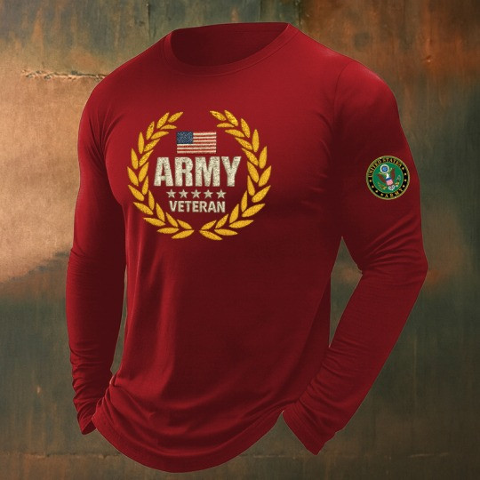 Rushgleam U.S Army Veteran Merch Long Sleeve Shirt Us Army Veteran Proud American Veteran Gift Ideas