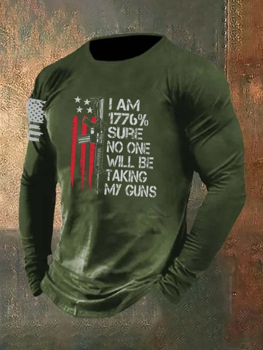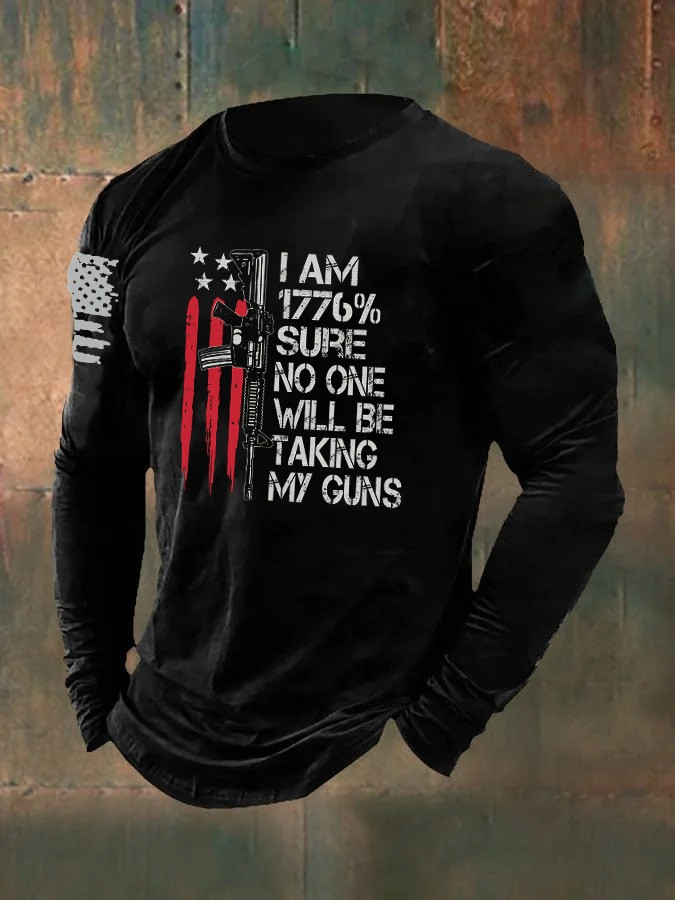 Rushgleam U.S Veteran Merch Long Sleeve Shirt I Am 1776 Sure No One Will Be Taking My Gun Idea Gifts
