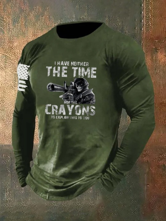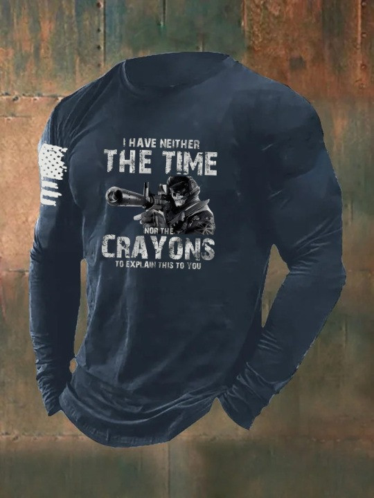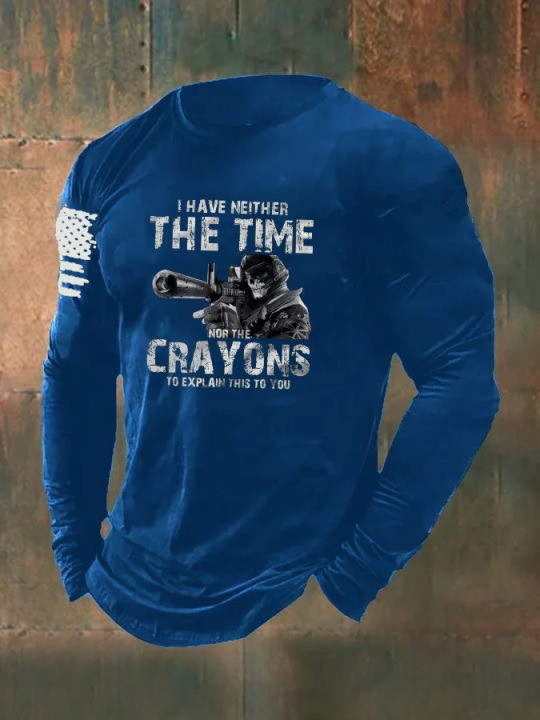 Rushgleam U.S Veteran Merch Long Sleeve Shirt I Have Neither The Time Nor The Crayons Idea Gifts