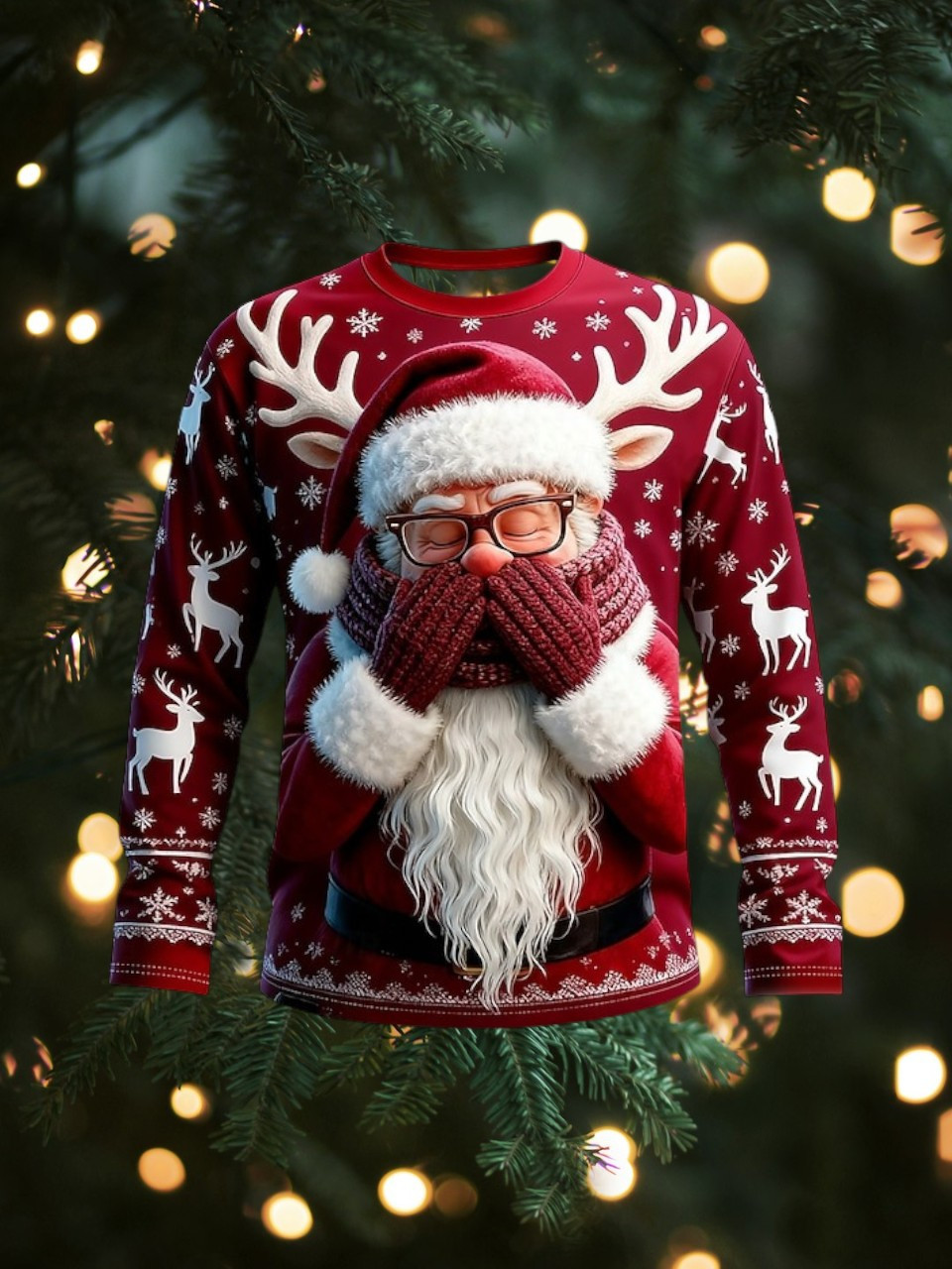 Reindeer And Santa Covering Face Christmas Long Sleeve Shirt Cute Christmas Gifts For Him