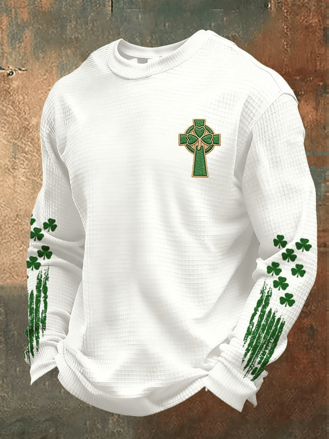 $42.99 – $47.99Price range: $42.99 through $47.99Irish Celtic Cross Shamrock Waffle Long Sleeve Shirt St. Patrick’s Day Christian Crewneck