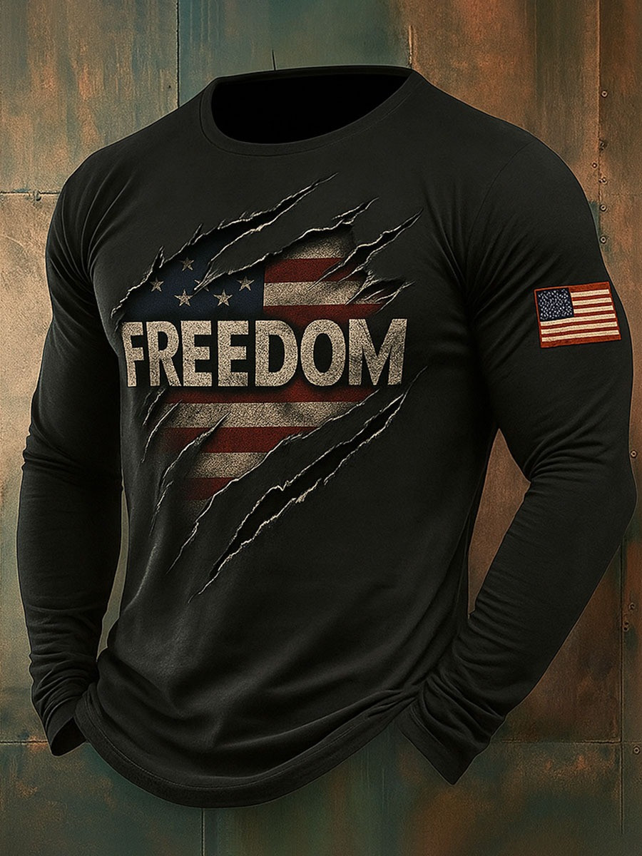 Rushgleam US Veteran Freedom Long Sleeve Shirt Proud American Veterans Day Memorial Merch