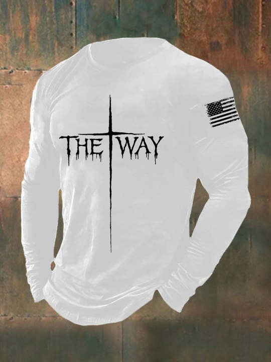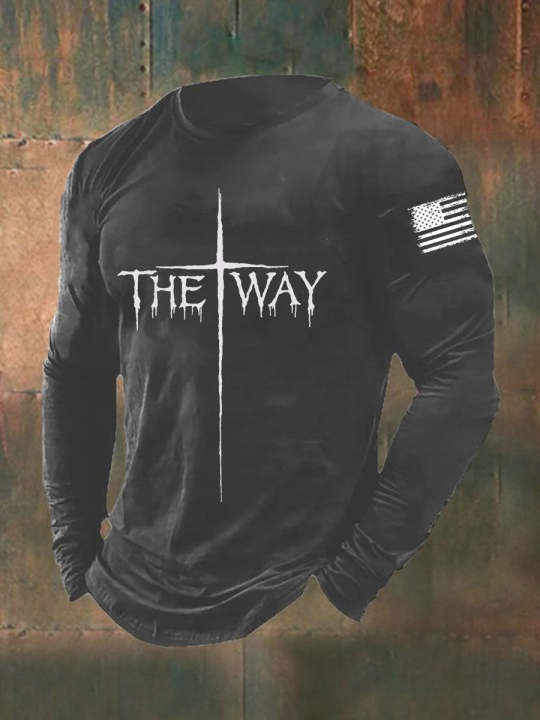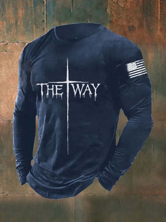 Rushgleam US Veteran Holy Cross The Way Long Sleeve Shirt Patriotic Faith Based Christian Veteran Shirt