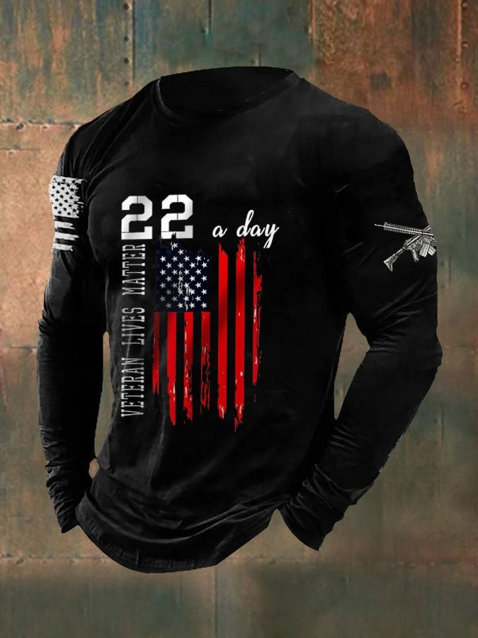 Rushgleam US Veteran Lives Matter Long Sleeve Shirt 22 A Day America Flag Apparel Memorial Gifts