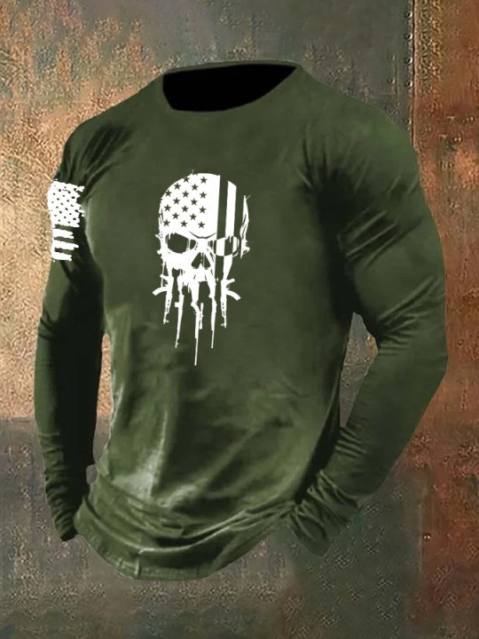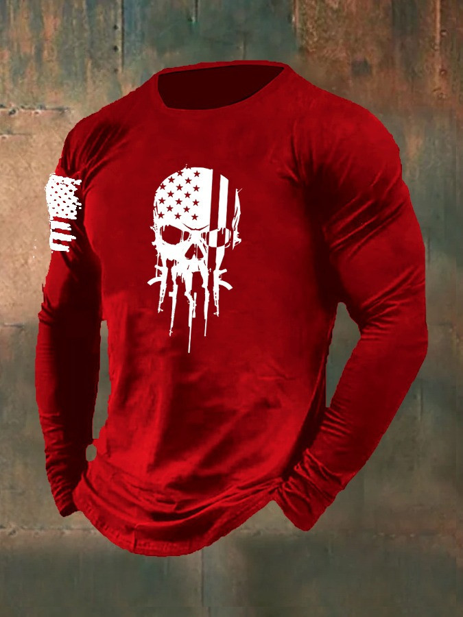 Rushgleam USA Veteran Skull Guns Long Sleeve Shirt Proud Veteran Best Patriotic Military Shirt