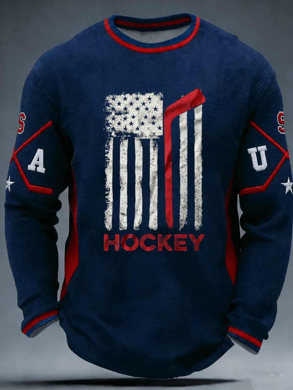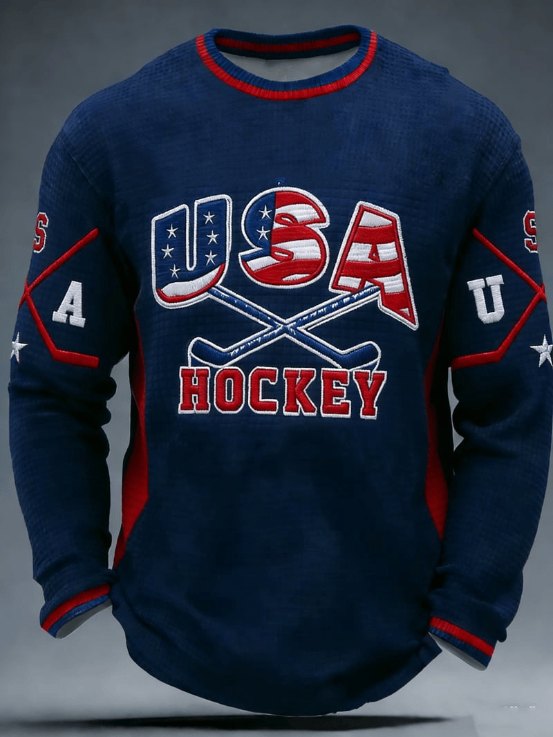 Men’s Team USA American Flag Hockey Sports Print Waffle Long-Sleeve T-Shirt Sports Gift