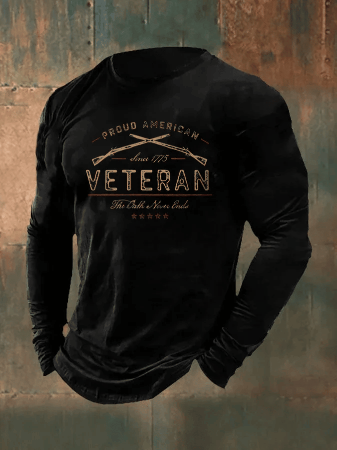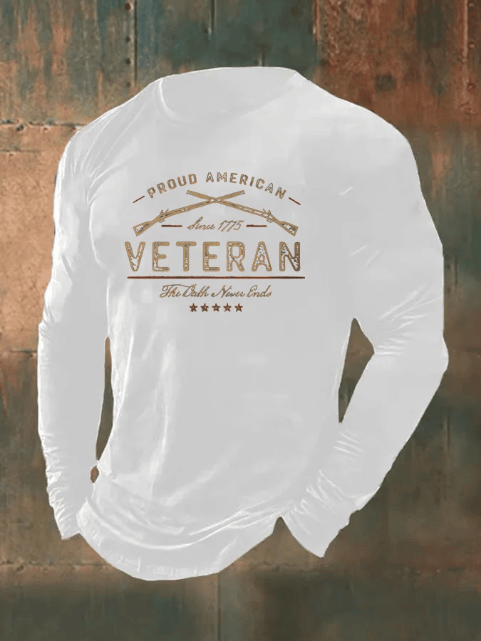 Men’s Veteran Vintage Print Long Sleeve T-Shirt Army Navy Air Force Marines Shirt Veterans Day Gift for Men