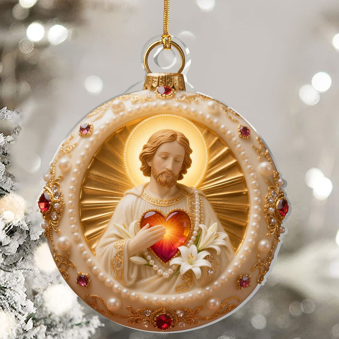Hearts Of The Holy Family Christmas Ornament Jesus Tree Decor Xmas Gifts For Christians