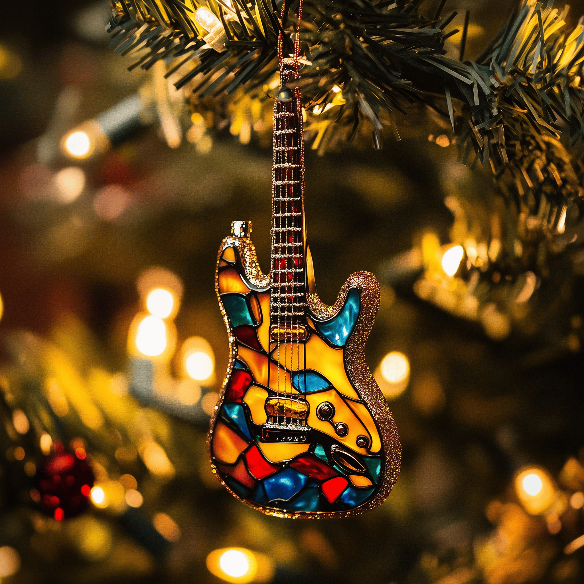 Glitter Guitar Mica Ornament Sparkling Guitar Design Christmas Ornament Perfect Musical Instrument Gift Idea