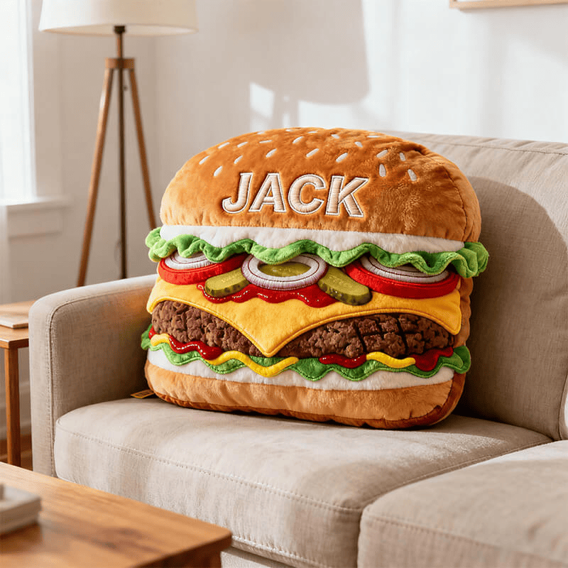 Custom Name Cheeseburger Plush Pillow 3D Shape Plush Pillow Funny Bonus Daughter Gifts