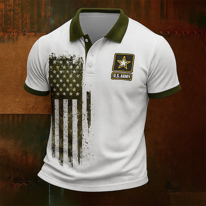 Rushgleam United States Army Veteran Polo Shirt America Flag Military Clothings For Him