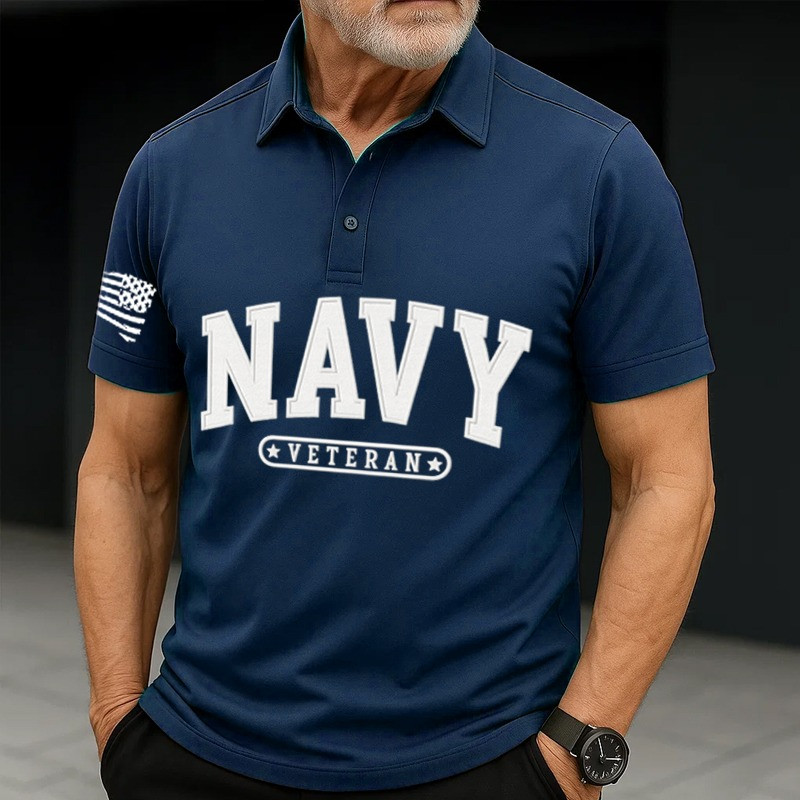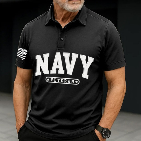 Rushgleam U.S. Navy Veteran 250th Anniversary Printed Men’s Polo Shirt Military Clothing Gifts