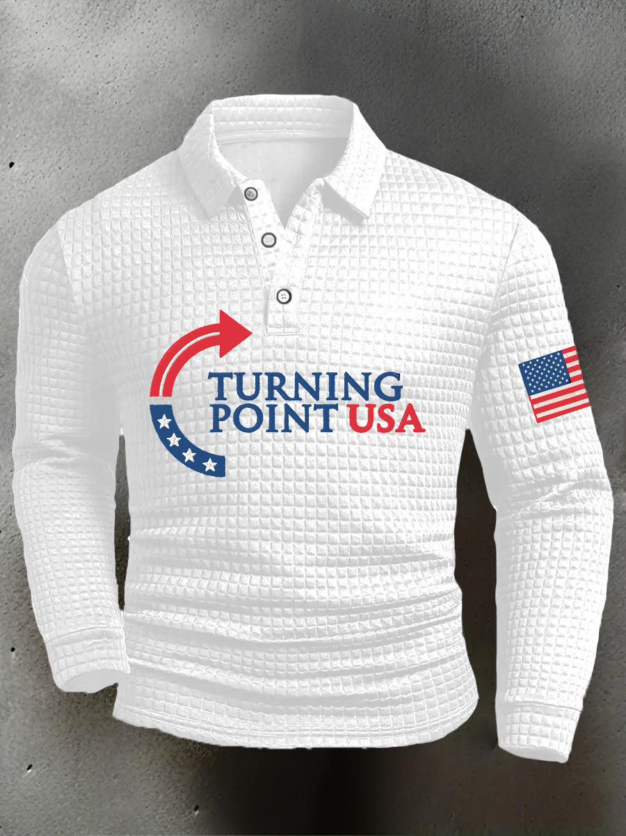 Turning Point USA Long Sleeve Polo Shirt Patriotic American Flag Presents For Men