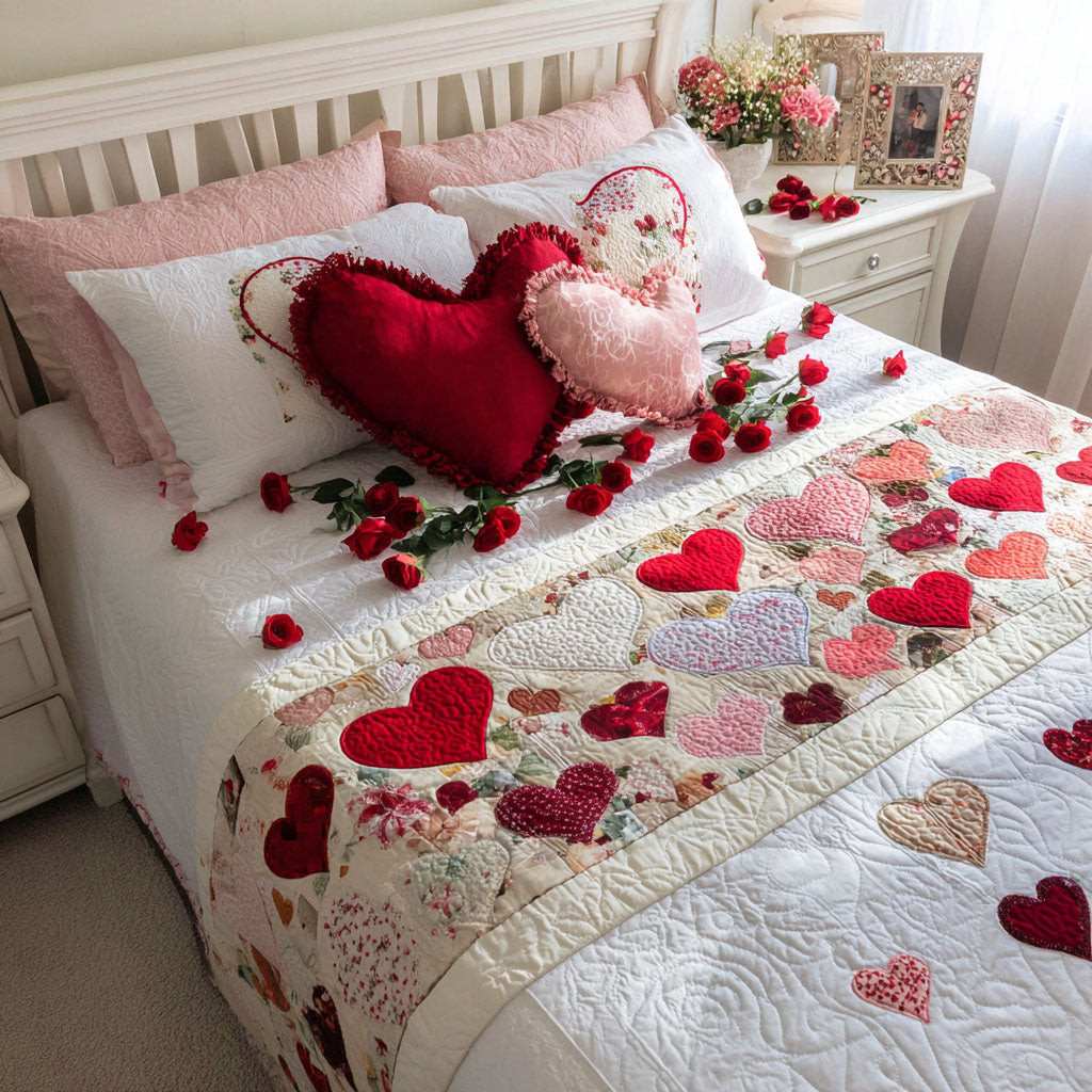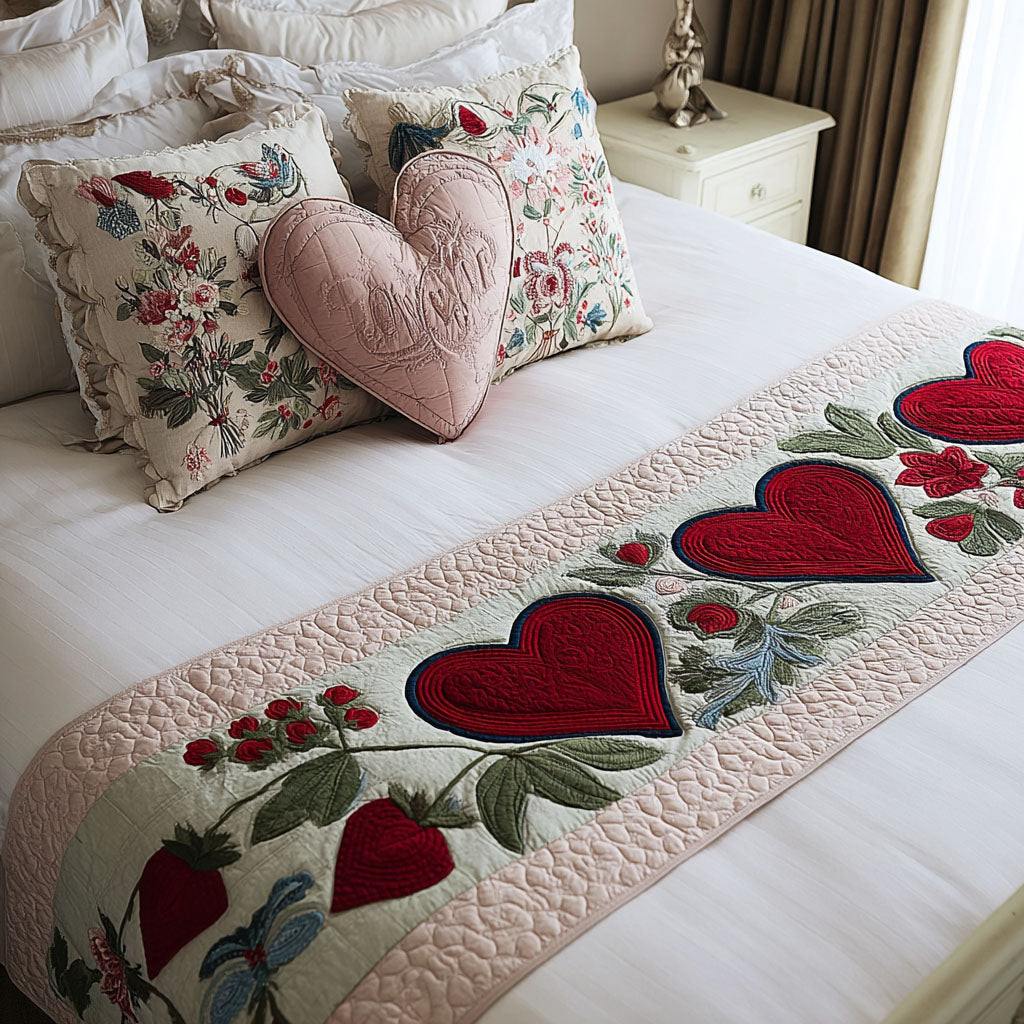 Elegant Hearts Quilted Bed Runner Room Decor Ideas Valentines Gifts Idea For Wife