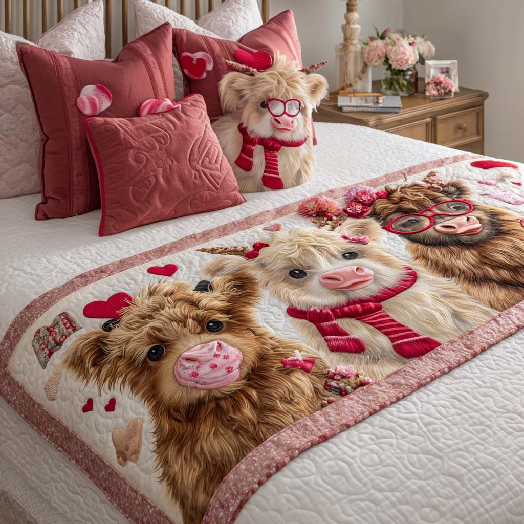 $39.95 – $49.95Price range: $39.95 through $49.95Highland Cow Valentine Quilted Bed Runner Room Decor Valentine Gifts Idea For Couples