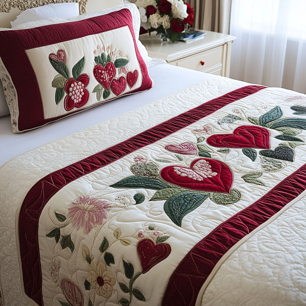 Heart Treasures Quilted Bed Runner Bed Decor Ideas Valentines Presents For Lovers