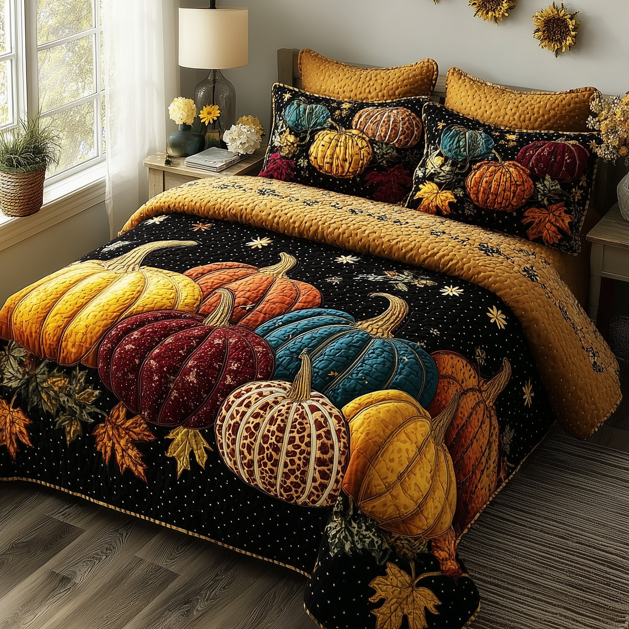 Autumn Pumpkin Quilted Bedding Set Room Decor Autumn Farm Wife Gifts