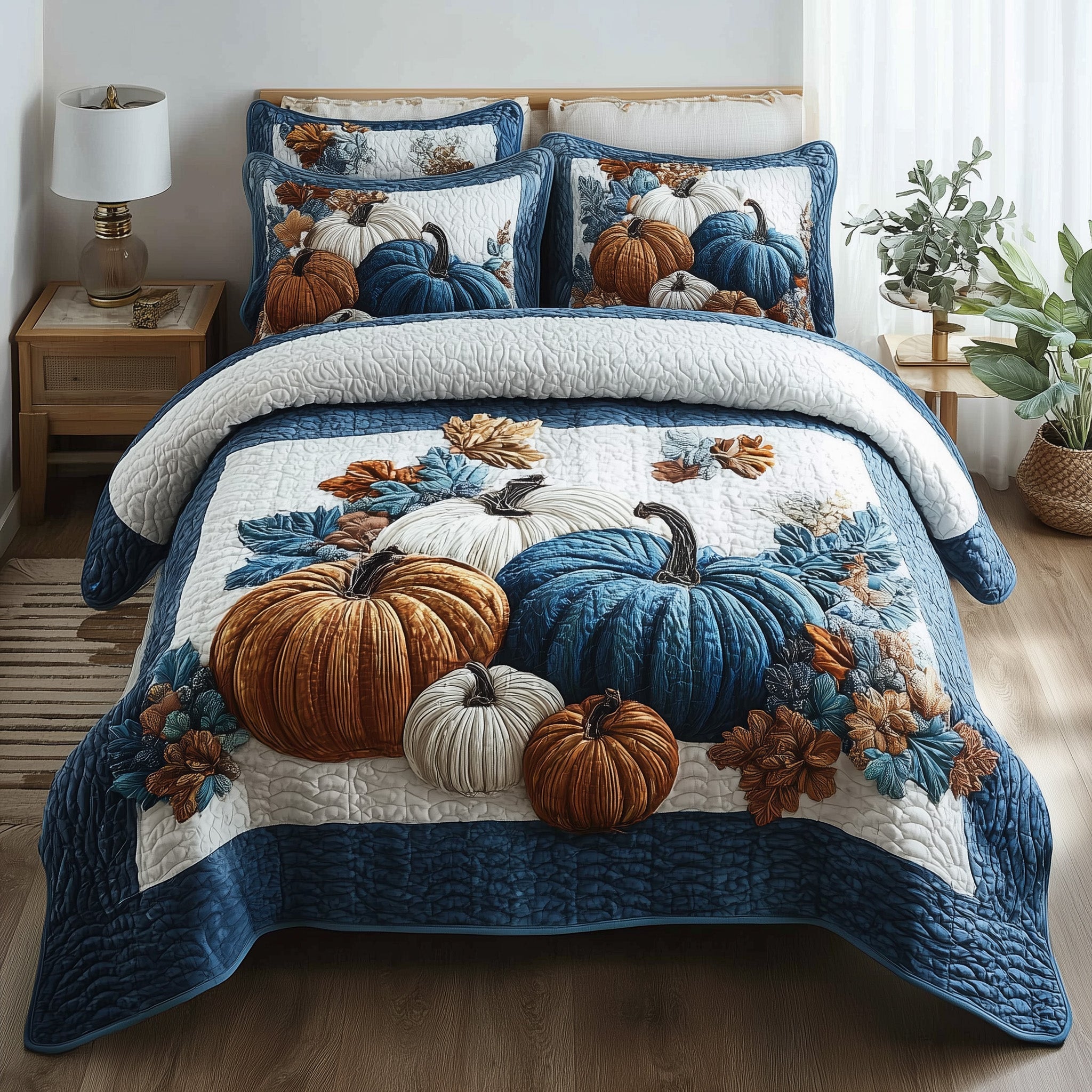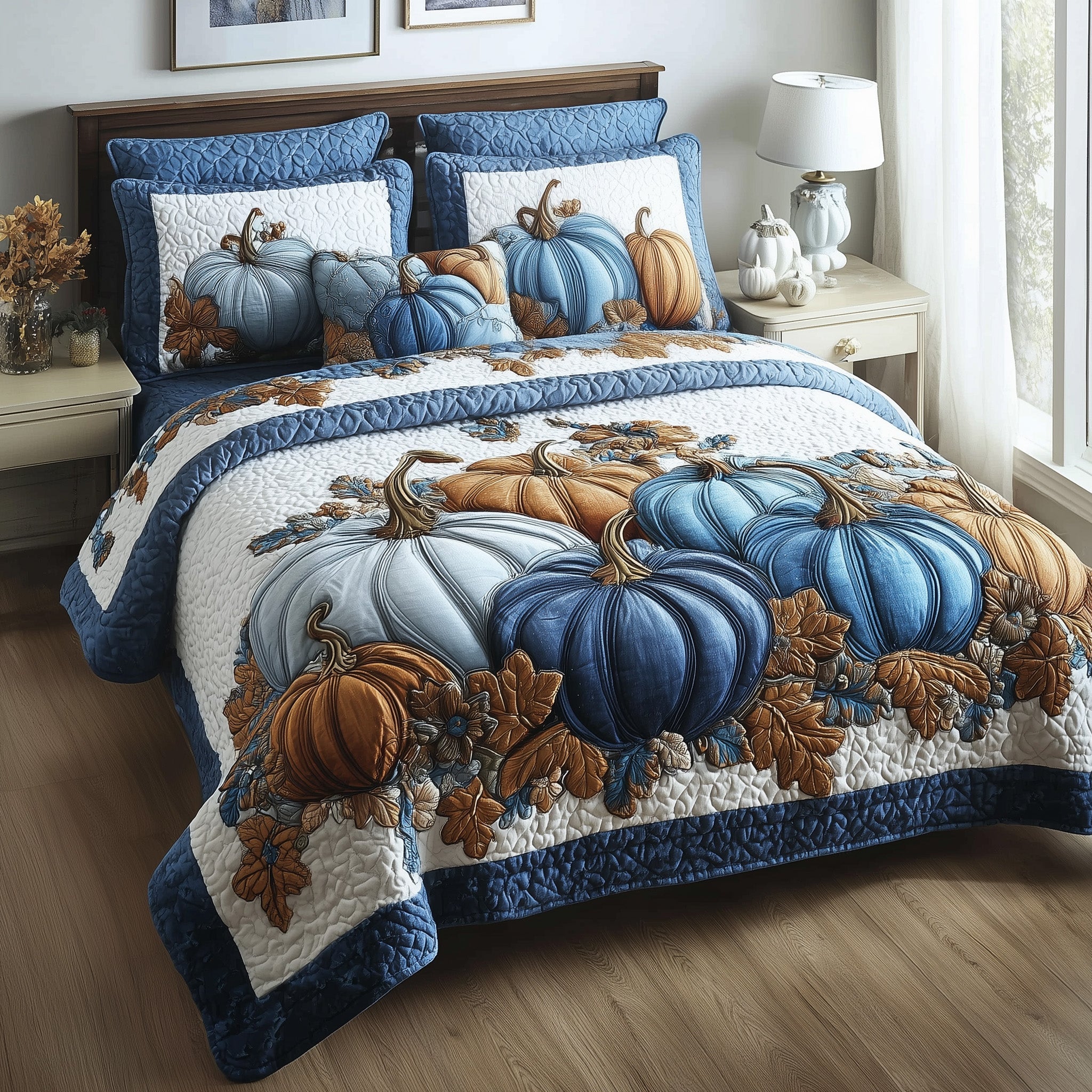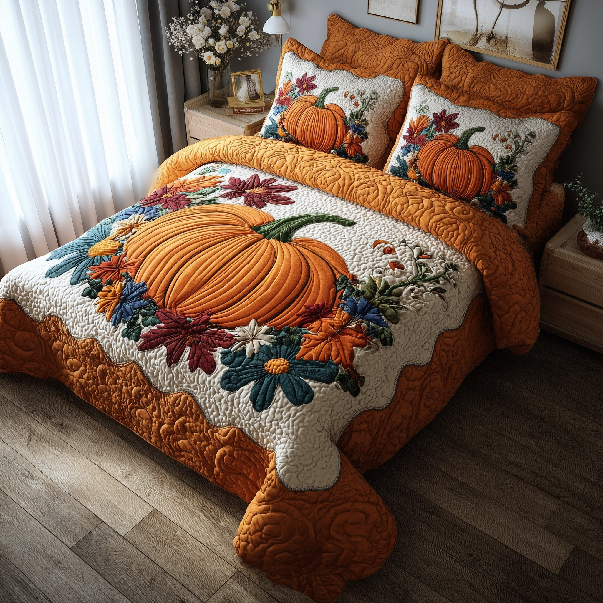 Autumn Pumpkin Quilted Bedding Set Room Decor Gifts For Autumn Lovers
