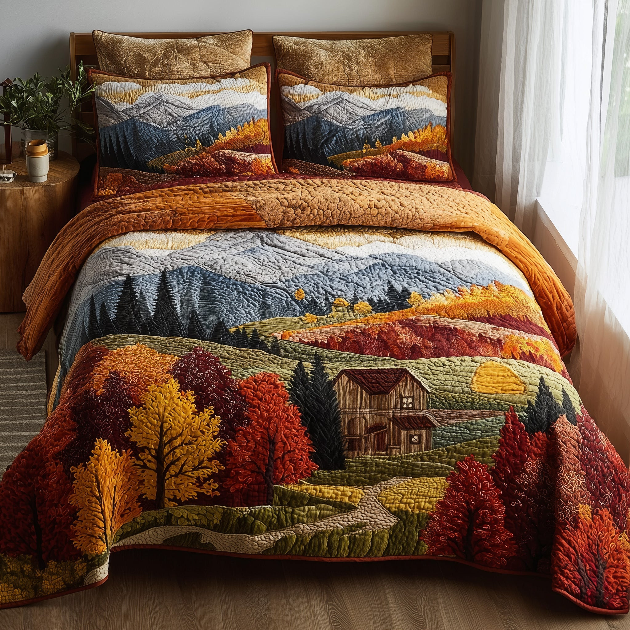 Autumn Villages Quilted Bedding Set Duvet Cover Fall Autumn Season Gifts