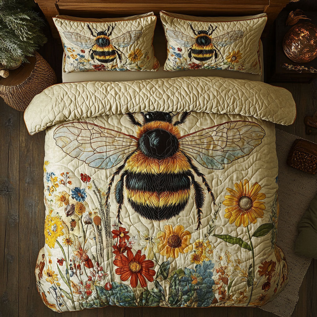 Bee Meadow Buzz Quilted Bedding Set Duvet Cover Bedspread Gifts For Dad And Mom