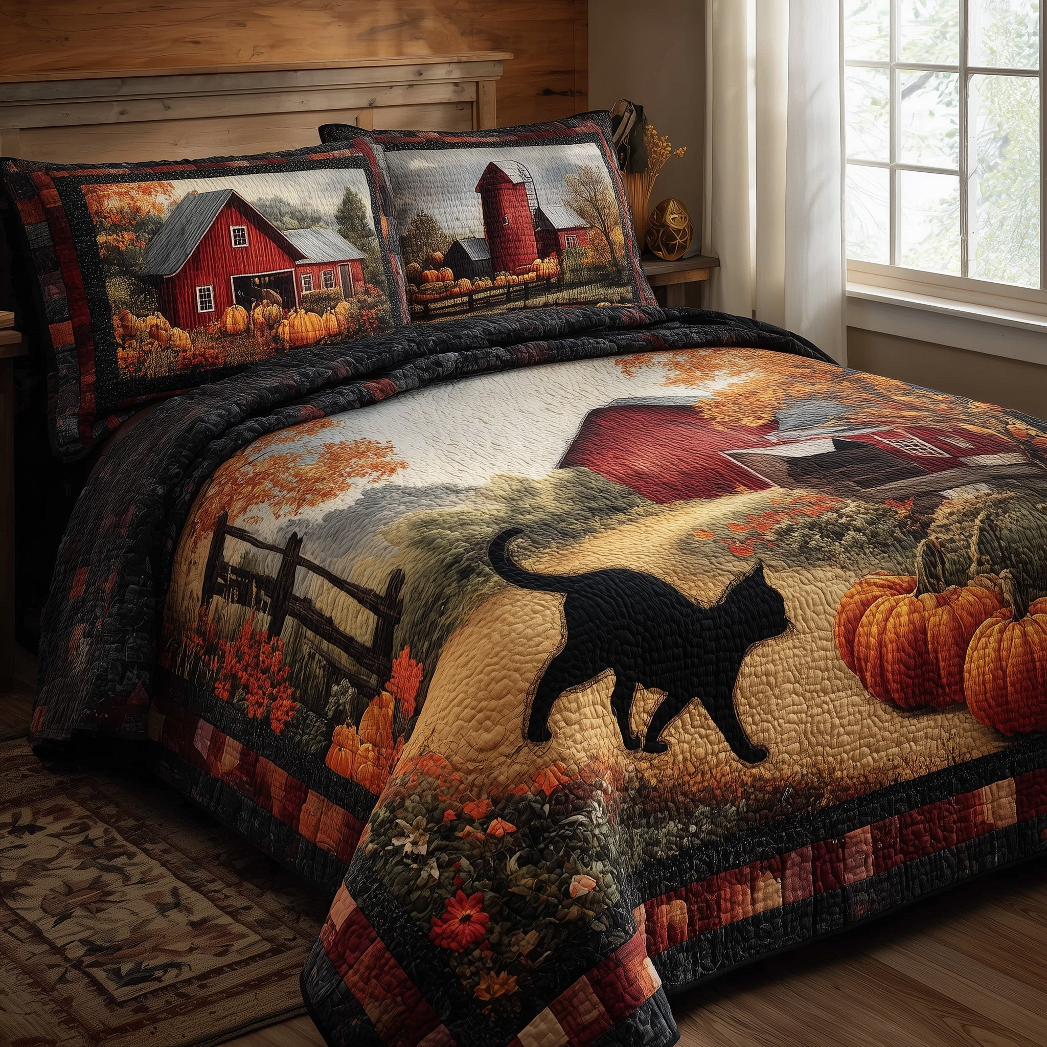 $79.95 – $109.95Price range: $79.95 through $109.95Black Cat Autumn Quilted Bedding Set Bedspread Pumpkin Gifts For Black Cat Owners