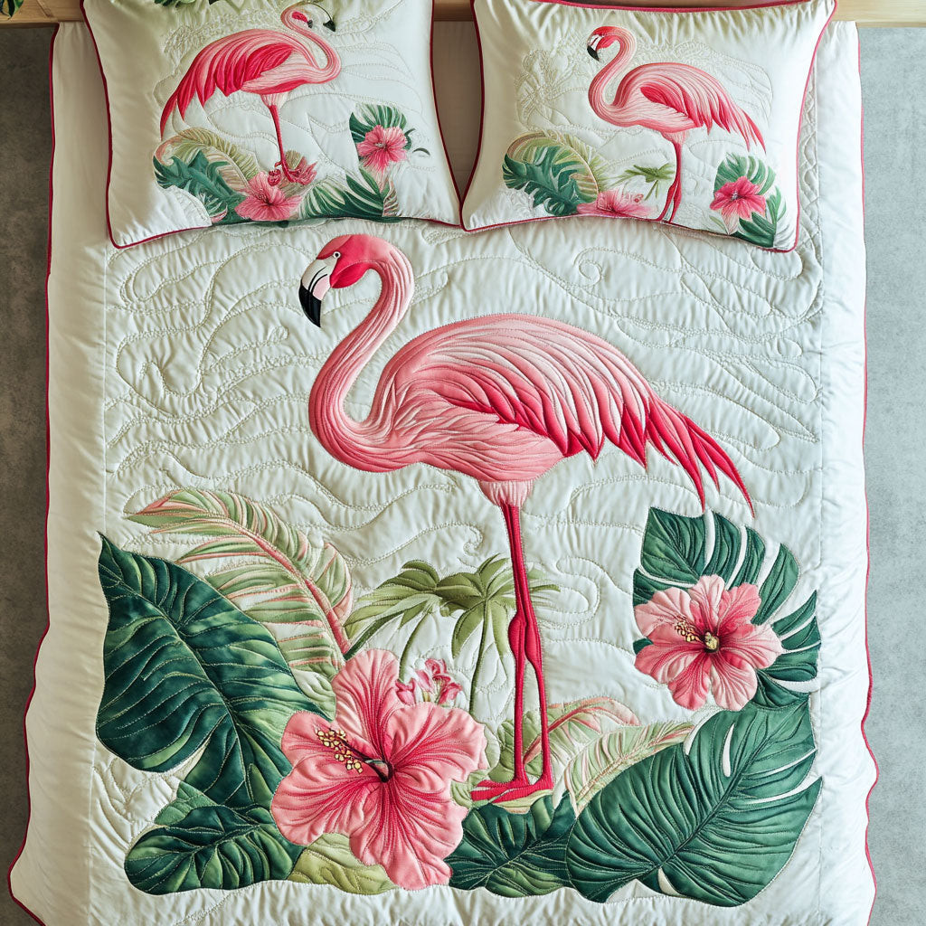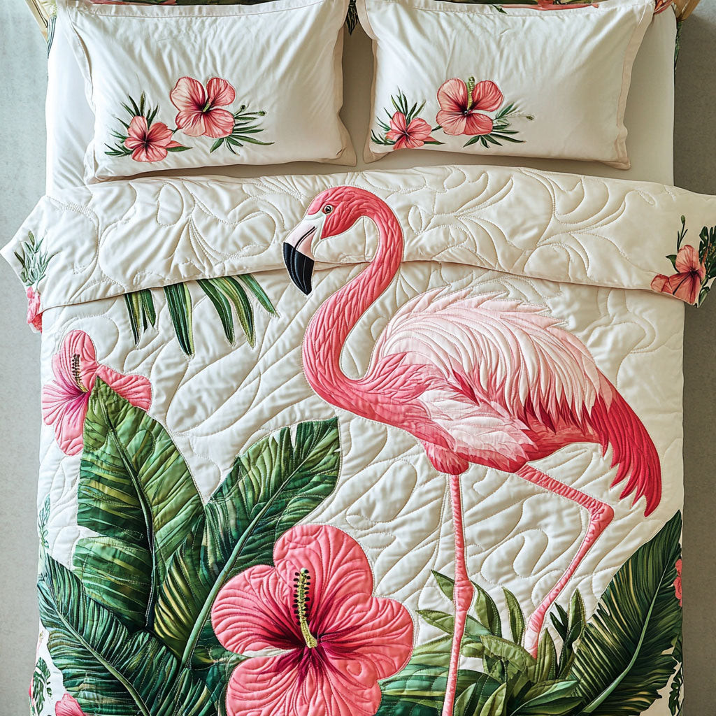 Flamingo Quilted Bedding Set Christmas Bedding Set 2024 Unique Christmas Gifts