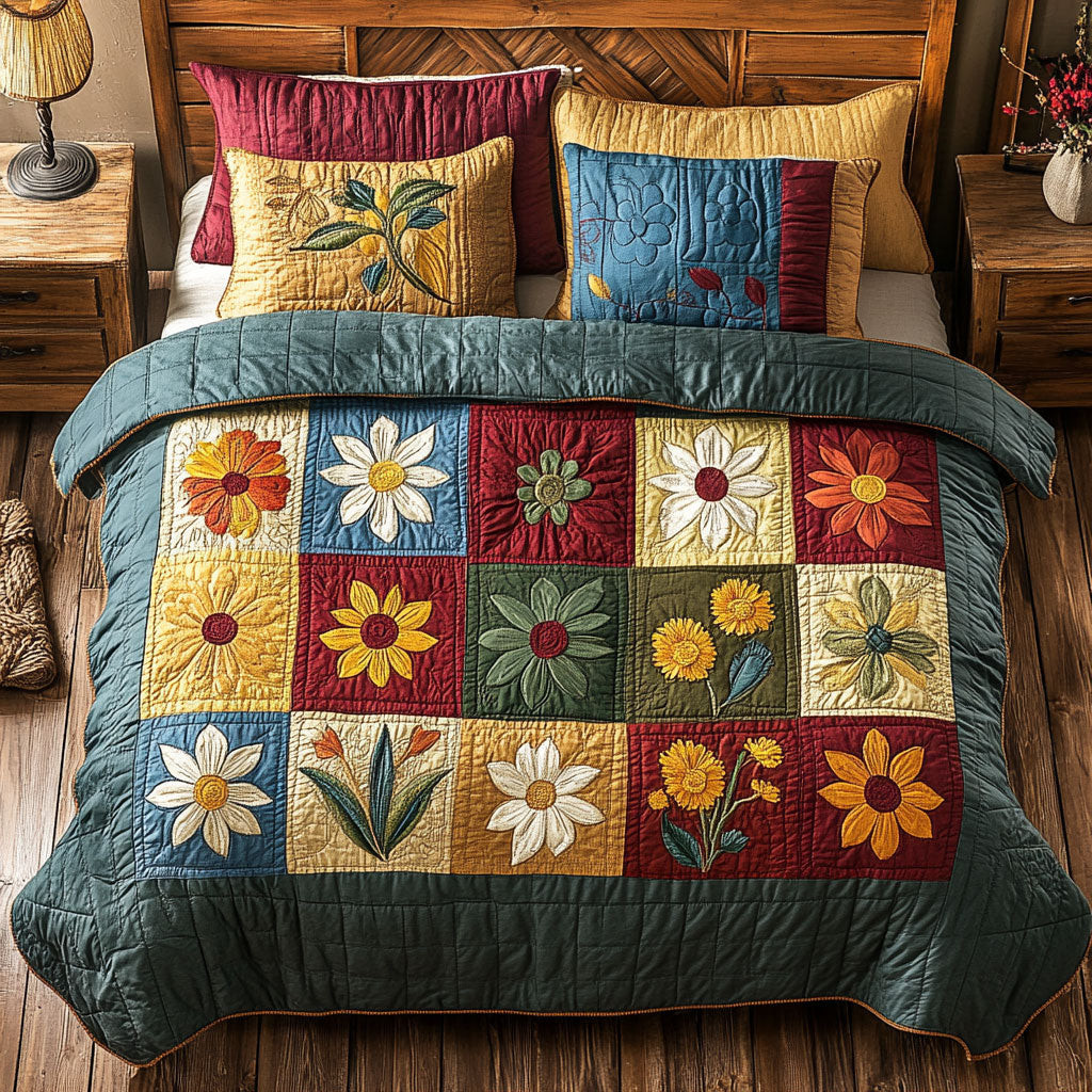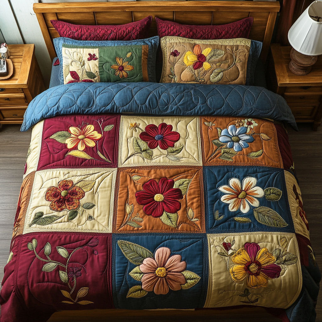 Flower Quilted Bedding Set Duvet Cover Bedspread Present Ideas For Friends