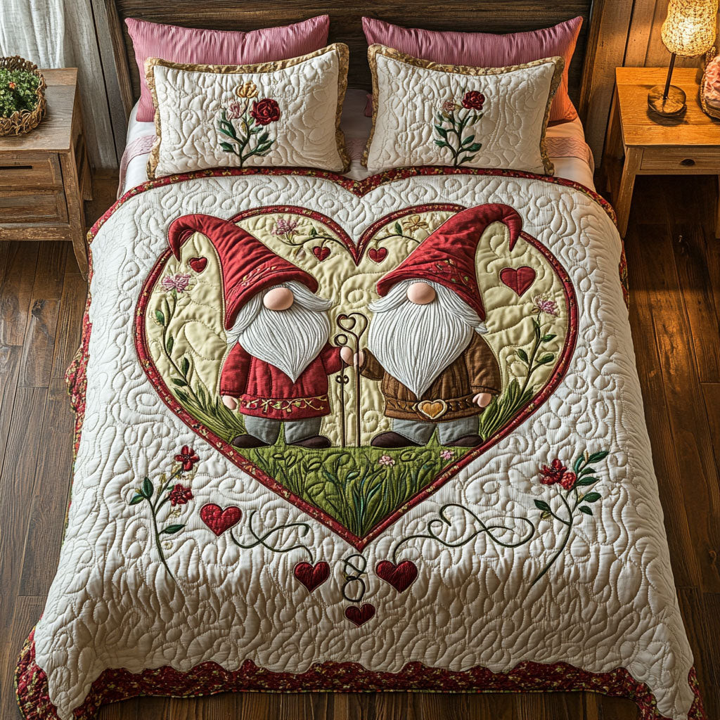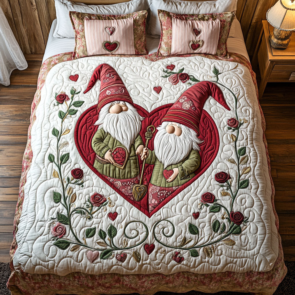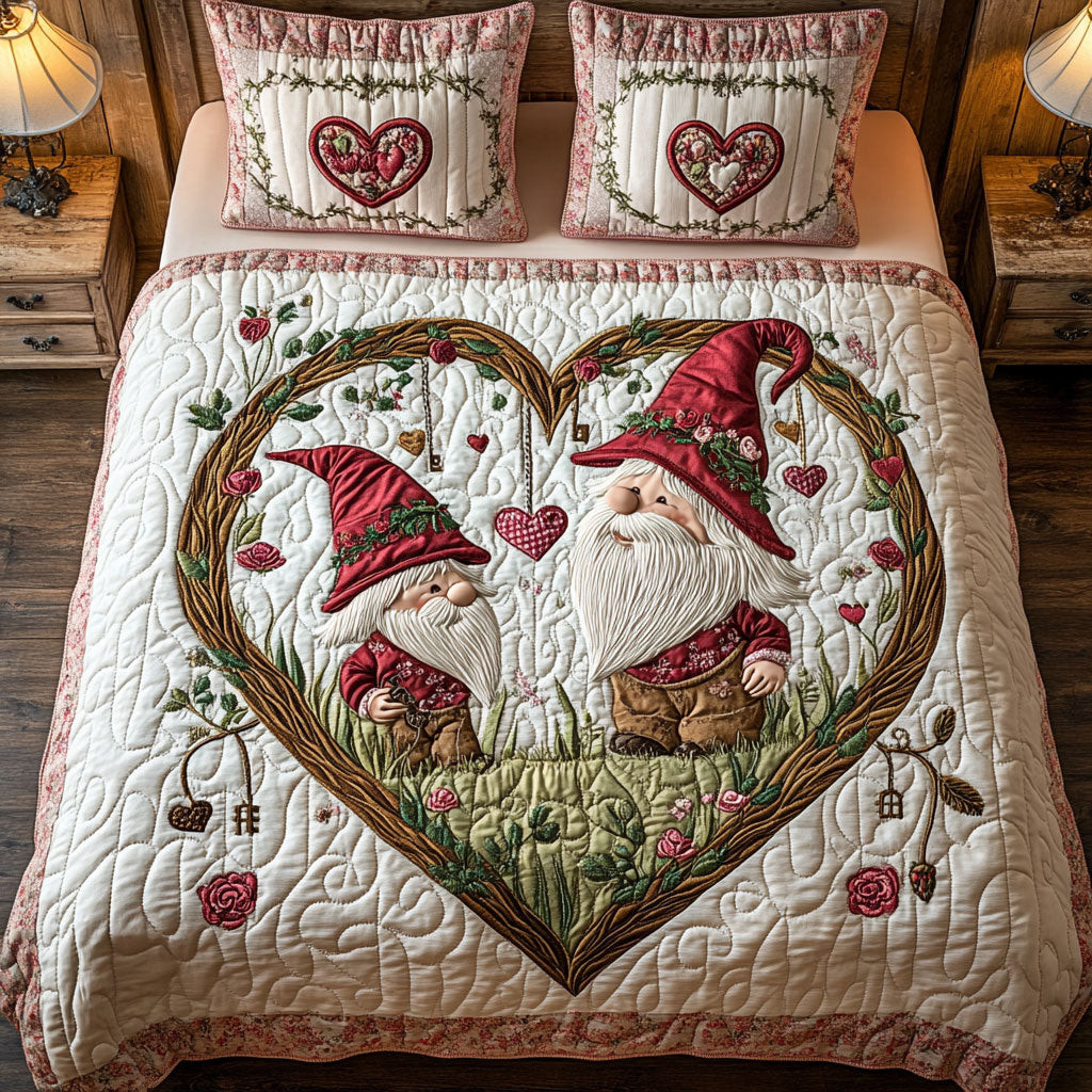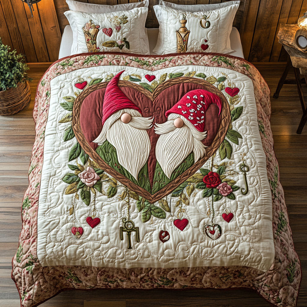 Gnome Huddle Quilted Bedding Set Queen Size Quilt Holiday Gift For Dad