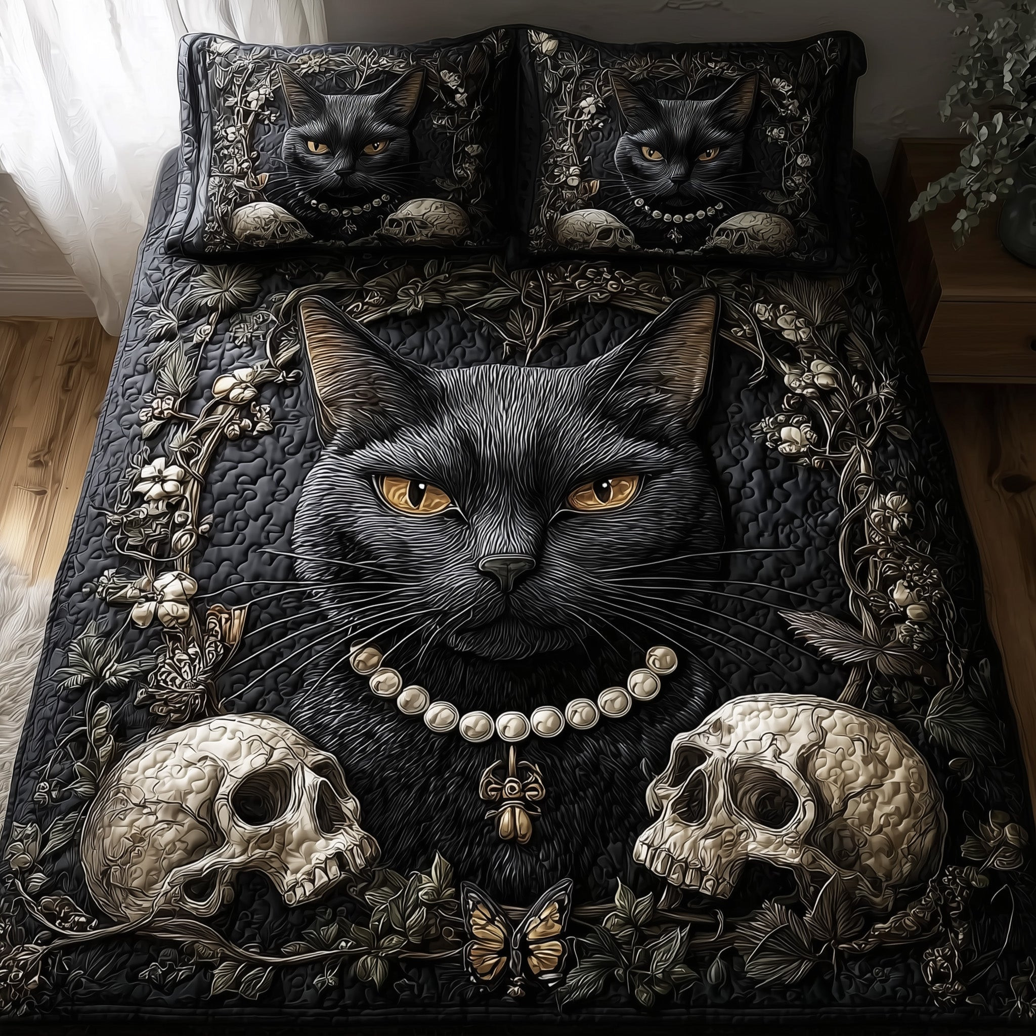 $79.95 – $109.95Price range: $79.95 through $109.95Gothic Cat Quilted Bedding Set Bed Decor Gift For Gothic Cat Lovers