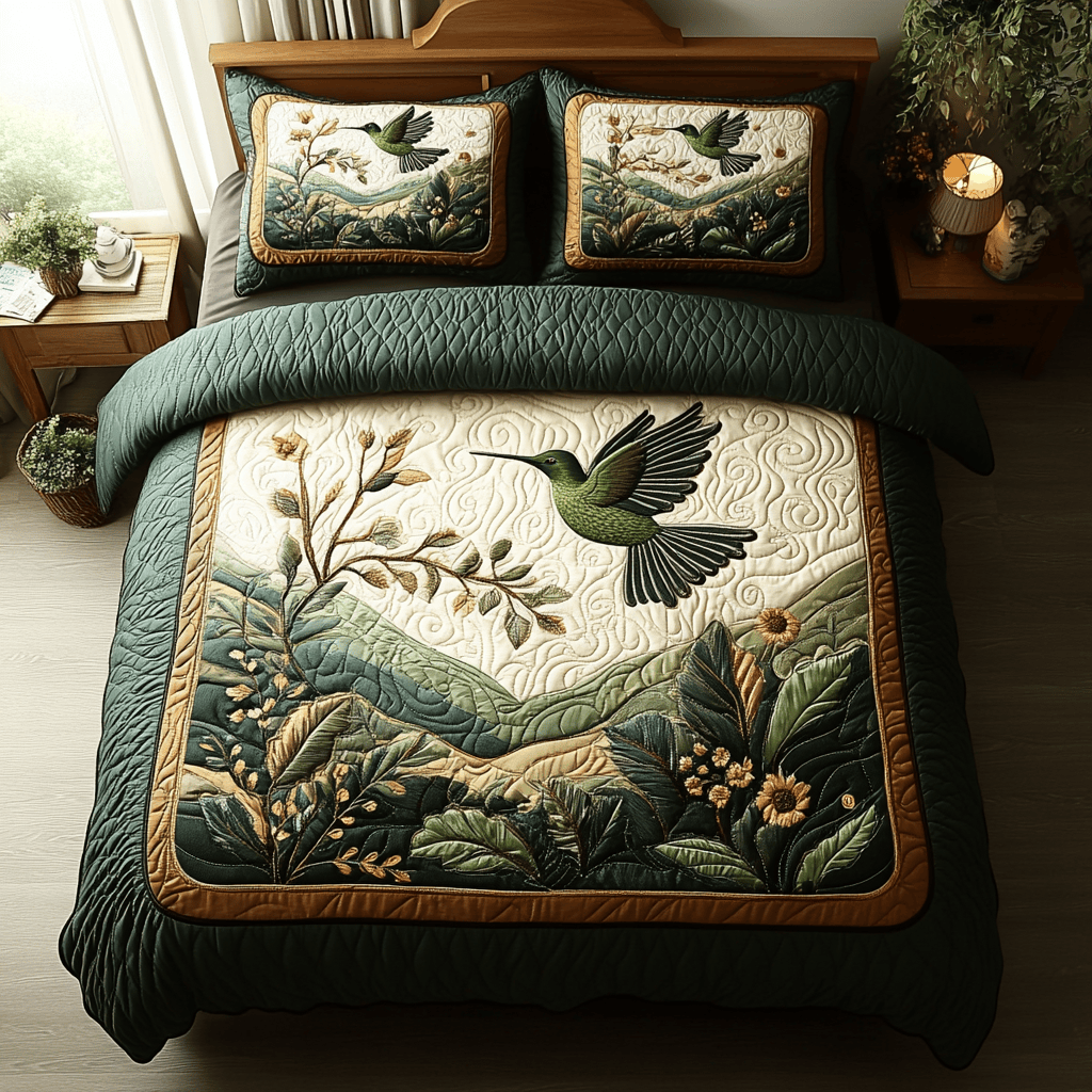 $79.95 – $109.95Price range: $79.95 through $109.95Green Hummingbird Quilted Bedding Set King Size Bed Set Fathers Day Gift From Daughter