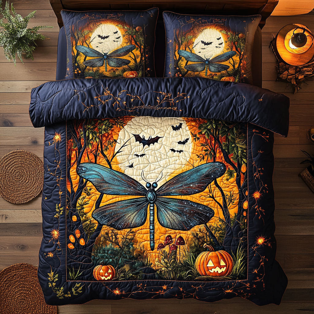 Halloween Dragonfly Night Quilted Bedding Set Duvet Cover Bedspread Best Gifts For Couples