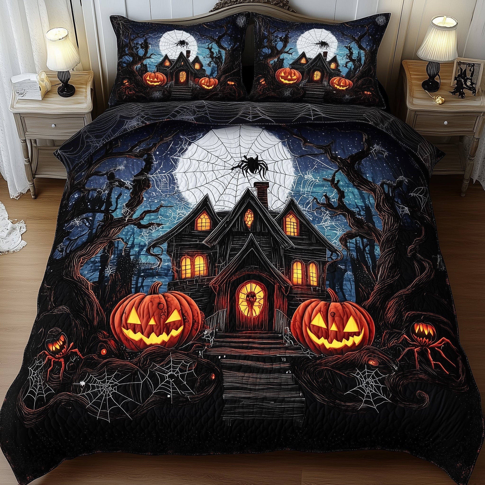 Haunted Pumpkin HouseQuilted Bedding Set Duvet Cover Bedspread Halloween Gifts