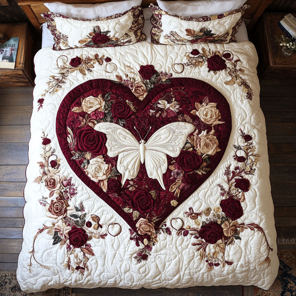 Heart Butterfly Quilt Cover King Size Bed Set Anniversary Gifts For Her