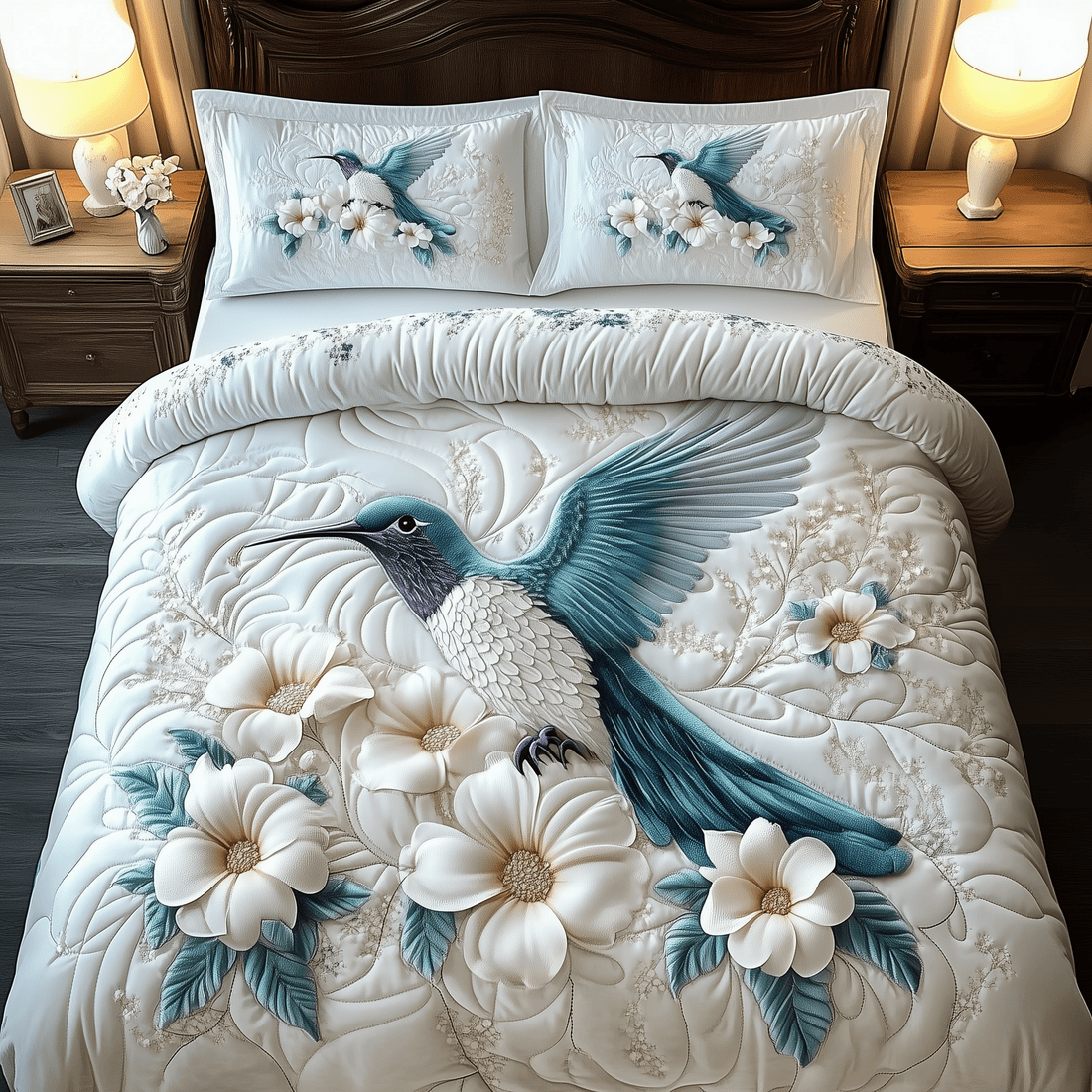 Hummingbird Quilted Bedding Set White Duvet Cover Best Father’s Day Gifts For Grandpa